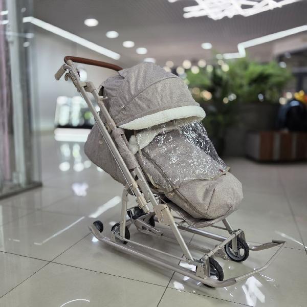 Санки-коляска Ника НД7-8К с шерстью, амортизацией и автоматическим складыванием