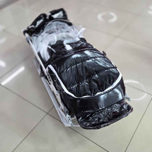 Прозрачный съемный тент дополнительно защитит ребенка от ветра и дождя, а большой трехсекционный козырек с меховой окантовкой позволит комфортно расслабиться малышу даже в шапке с большим помпоном. Спинка и подножка регулируются до положения для сна - малыш сможет вздремнуть на свезем морозном воздухе. От холода и ветра защитит накидка на ножки с молнией.