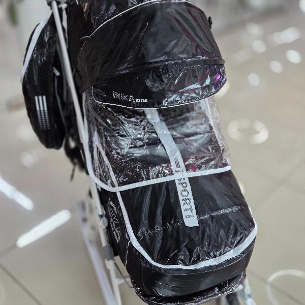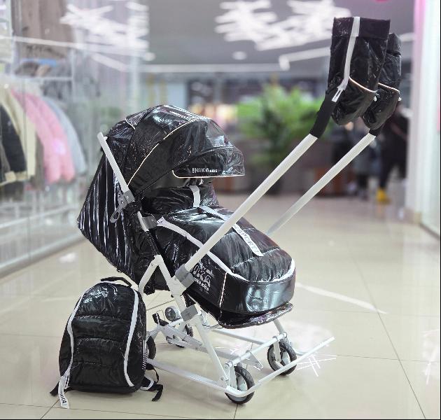 Прозрачный съемный тент дополнительно защитит ребенка от ветра и дождя, а большой трехсекционный козырек с меховой окантовкой позволит комфортно расслабиться малышу даже в шапке с большим помпоном. Спинка и подножка регулируются до положения для сна - малыш сможет вздремнуть на свезем морозном воздухе. От холода и ветра защитит накидка на ножки с молнией.